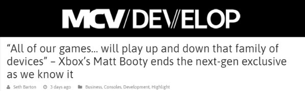 Sin embargo, el enfoque de Microsoft es totalmente diferente, yJason Schreier, periodista de Kotaku, reporta que están comprometidos en lanzar juegos en tanto dispositivos como puedan, por lo menos en sus primeros dos años.