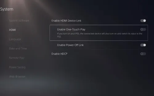 Junto a estos cambios, hay un par más de opciones que nos facilitarán la vida con la consola. En la sección de HDMI, podemos activar una función para que la TV se prenda de forma automática al prender la PlayStation 5. Asimismo, hay otra opción para que la consola entre en modo descanso una vez que apagamos el televisor.
