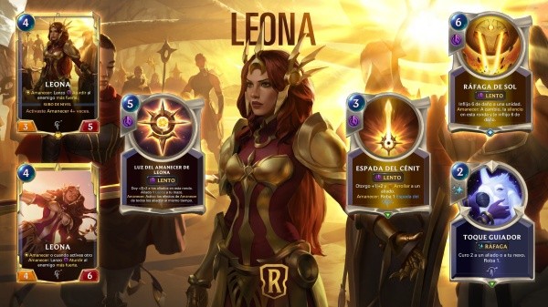 Por lo pronto nos toca centrarnos en Leona, que tendrá una nueva palabra clave: Amanecer. Al jugarla primero en la ronda “iluminará” a los enemigos, aturdiéndolos. Además, sus cartas aliadas conseguirán más puntos de defensa.