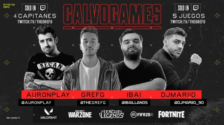 Para empezar, el creador de contenido anunció en primer lugar a los cuatro capitanes que tendrá este evento titulado ‘Calvogames’. Todo se llevará a cabo en Twitch y tendrá como grandes figuras a Ibai Llanos, DjMariio, Auronplay y por supuesto, el propio The Grefg. Ellos serán las cabezas visibles de cada equipo integrado por más ‘youtubers’, ‘streamers’, futbolistas profesionales, artistas y demás influenciadores que ayudarán a captar la atención de la audencia, cumplirán retos, penalizaciones y demás para recolectar un montón de dinero que luego será donado para la lucha contra el Coronavirus.