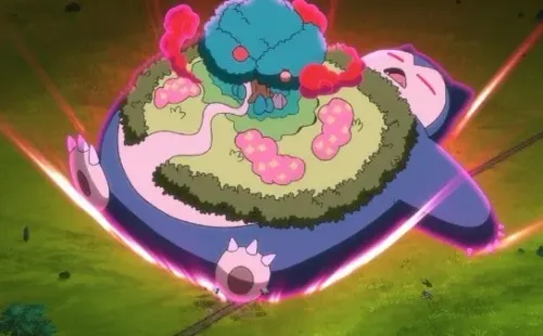 Como se puede ver en la imagen previa al episodio, Snorlax realizará la transformación Gigamax en el anime y será realmente enorme, como se ve en la imagen que aparece arriba, donde la relación de tamaño con el resto de las cosas que se encuentran en la toma es impactante.