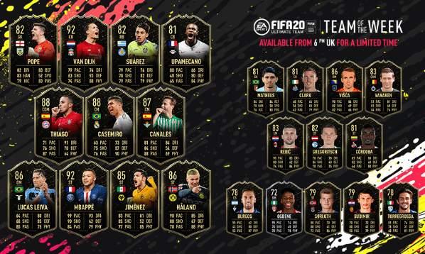 EA Sports reveló el Equipo de la Semana (TOTW) 19 del FIFA 20, que se podrá enfrentar en el modo Ultimate Team del juego y también allí se podrán obtener las cartas IF de los jugadores que fueron seleccionados en el TOTW.