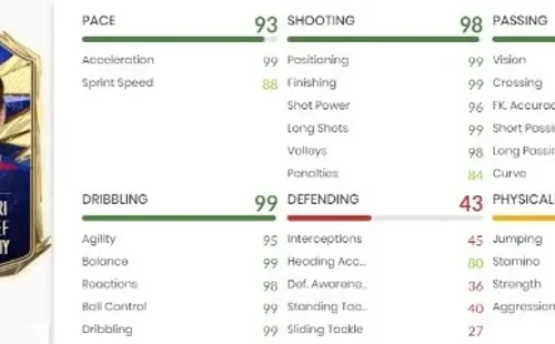 Que no se mal entienda, jugar con Messi TOTY será espectacular, pero su resistencia de 83 no le permitirá aguantar todo el partido. Y si la comparamos con el 96 de resistencia que tuvo su TOTY del FIFA 20, se nota la importante diferencia.