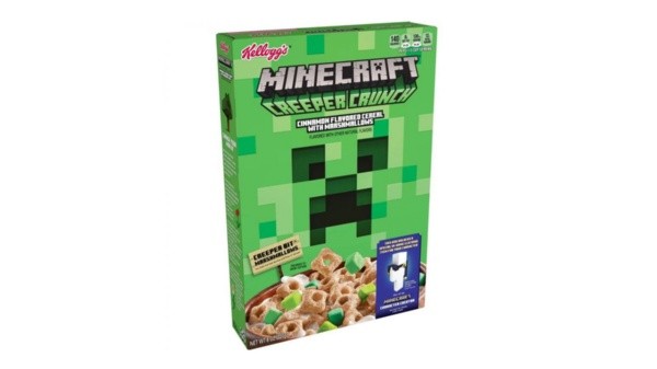Minecraft Creeper Crunch será el nombre del cereal, el cual se basará en cereales de sabor canela con malvaviscos. Y saldrá al mercado en los Estados Unidos en cajas de cuatro y seis dólares a partir del mes de agosto.