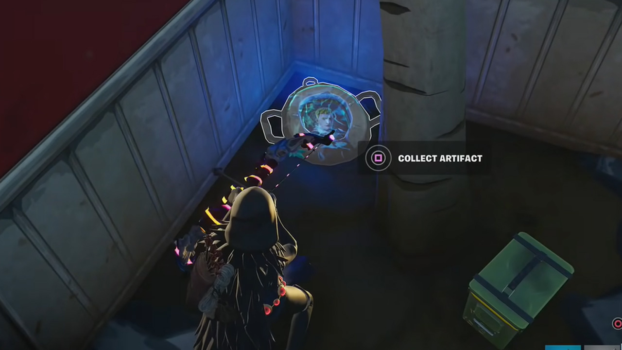 • El primer artefacto esta al sudeste la la ubicación, cerca de la alta torre de vigilancia. Lo encontrarás fuera de la misma, bajo las escaleras en el norte de la torre.