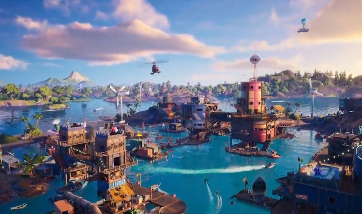 El nuevo mapa de Fortnitedemuestra que el elemento de agua se apropió de gran parte del mapa, lo cual le da un cambio de aspecto sumamente brutal al juego. Los sectores de tierra están conectados por puentes, en algunos puntos, mientras que la otra opción para viajar es atravesar los sectores de agua que los separan.