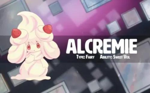 Alcremie produce nata, que se vuelve más dulce cuanto más feliz se siente. Los postres hechos con esta nata son deliciosos, por lo que todos los pasteleros buscan a este Pokémon como compañero. Alcremie expulsa nata de aroma dulce para distraer o cegar a sus contrincantes y, así, procurarse tiempo para escapar.