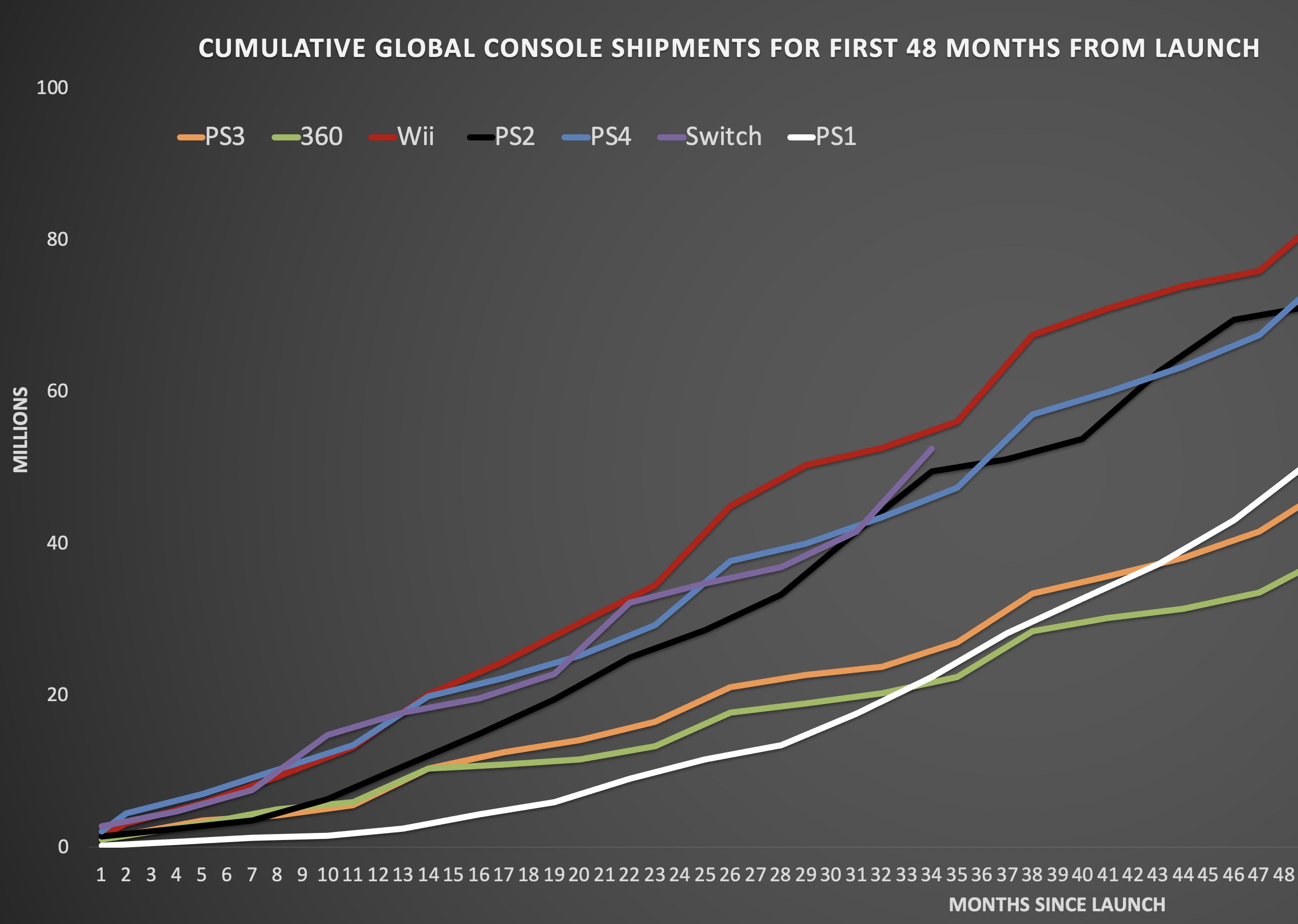 Sin embargo, esto es aún más impresionante cuando se lo compara con consolas de otras compañías, como la actual Xbox One de Microsoft, a la cual ya superó en ventas y lo hizo en menos de la mitad de tiempo en el mercado.
