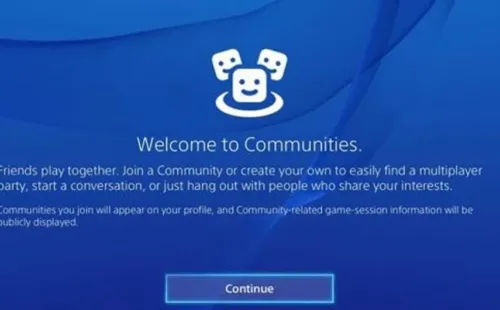 Sony introdujo las Comunidades en septiembre de 2015 a PS4, bajo la actualización 3.00 del firmware de la consola. Su razón de ser era lograr que jugadores con intereses similares puedan conocerse, contactarse y formar grupos mediante un tablón de mensajes.
