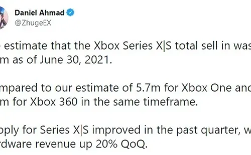 El CEO de Microsoft, Satya Nadella, no revela las cifras exactas de ventas de sus consolas, pero aún así dijo recientemente que la Series X y Series S son sus consolas que más rápido se vendieron en su historia. Y según el analista Daniel Ahmad, se estima que hasta ahora se han vendido alrededor de 6,5 millones de unidades.