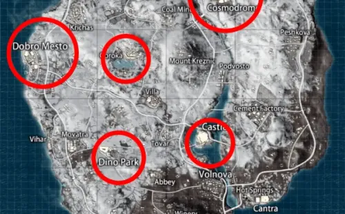 Ubicado en los límites de Vikendi, Dobro Mesto cuenta con una importante cantidad de casas para conseguir objetos, de los cuales hay de sobra. Tampoco suele ser un lugar muy recurrido justamente por su ubicación, pero encontrarás varios vehículos en las adyacencias para dirigirte hacia donde desees. Eso sí, siempre mira el mapa y la zona, no querrás quedarte muy lejos del lugar de cierre y tener que correr para que no te alcance.