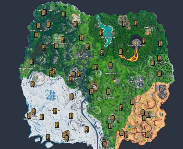 Decenas de máquinas expendedoras se encuentran en el mapa de Fortnite, así que no serán difíciles de encontrar. A continuación puedes ver las ubicaciones de las máquinas expendedoras.