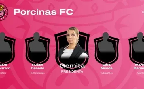 De cara a la Queens League, Porcinas FC contará con Ibai Llanos y Gemita como sus principales dirigentes, ya que Ibai es el Presidente de la organización, mientras que Gemita se encargará del equipo de la Queens League desde la parte directiva. Y en el draft eligieron las 10 primeras jugadoras para Porcinas FC, que son las siguientes: