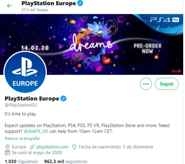 En especial el Twitter oficial de PlayStation Europe, donde se expresa que se pueden“esperar actualizaciones en PlayStation, PS4, PS5, PS VR, PlayStation Store y más”,pero lo relevante es que en la biografía de su perfil editaron el slogan que se ha utilizado en los últimos años,“For the players”, por uno nuevo:“It’s time to play”.