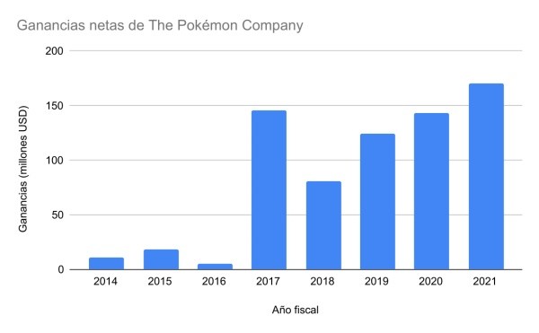 The Pokémon Company anunció que lapropiedad generóU$S1,1 millones (120 mil millones de yenes) en ventas en los últimos 12 meses. De esto, U$S170 millones (18,6 mil millones de yenes) fueron ganancias netas.