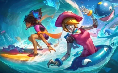 Ayer por la tarde las cuentas de League of Legends lanzaron un pequeño video enloop,en él se veía la porción inferior del cuerpo de cinco Campeones del juego, los cuales recibirán nuevos aspectos en el evento de Fiesta en la Piscina.