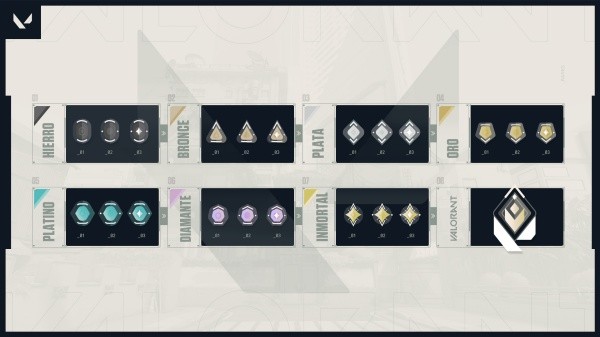 Habrá 8 rangos con 3 grados por cada uno, a excepción del rango más alto: VALORANT