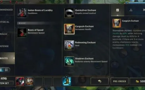 Los objetos también sufrirán modificaciones, con partidas pensadas para durar de 15 a 20 minutos, los costos de objetos de League of Legends se reducen, se añaden nuevos y también activas para objetos comprables, como en botas u Redención o Armadura Pétrea.