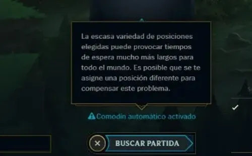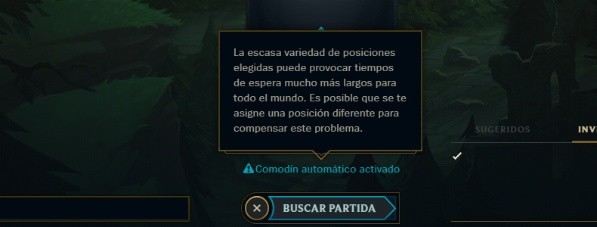 El Comodín Automático fue implementado debido al desbalance en la selección de un rol en las partidas (más del 50% de los jugadores elegía Top/Mid y menos del 10% Soporte), para reducir los tiempos de espera, un jugador podría aleatoriamente convertirse en un comodín y ser asignado a un rol para el que no había suficiente demanda.