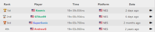 Si bien fue por milésimas, Kosmic es el primer jugador en la historia en bajar los 19 minutos. GTAce99 había logrado un nuevo récord seis días atrás en el que había bajado casi 3 segundos el mejor tiempo.