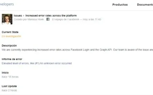 Los reportes de problemas en Down Detector ya superan las 10 mil quejas de usuarios y desde Facebook explicaron que“Actualmente estamos experimentando un incremento de errores en Facebook Login el Graph API, nuestro equipo está al tanto del problema y trabajando en una solución.”