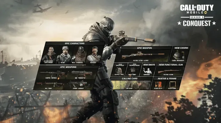 - Temporada 9: Pase de Batalla de Conquest– Nuevos Personajes, armas, ítems y más.