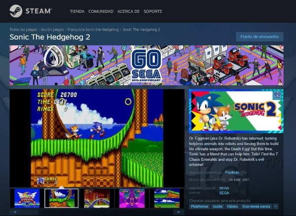 En éste último apartado, podremos hacernos con el clásico Sonic The Hedgehog 2, lanzado en noviembre de 1992, y uno de los grandes clásicos de esta franquicia. Los fanáticos podrán descargar el juego en Steam sin costo alguno hasta el próximo 19 de octubre.