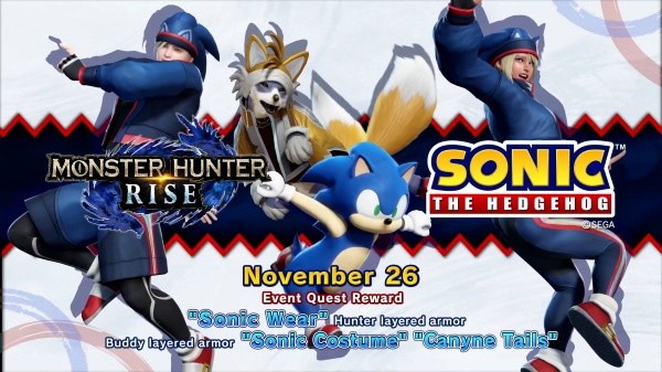 El evento entre Monster Hunter Rise y Sonic the Hedgehog se lanzará el próximo 26 de noviembre. El juego se lanzará para PC a principios del 2022, y más adelante recibirá su primera expansión, Sunbreak.