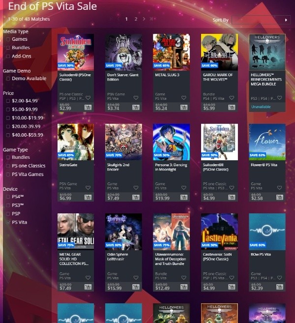 “Promoción de fin dePS Vita” es el nombre de la promoción que se puede obtener de PS Vita en la PlayStation Store (US), donde se pueden encontrar varios títulos bastante accesibles.