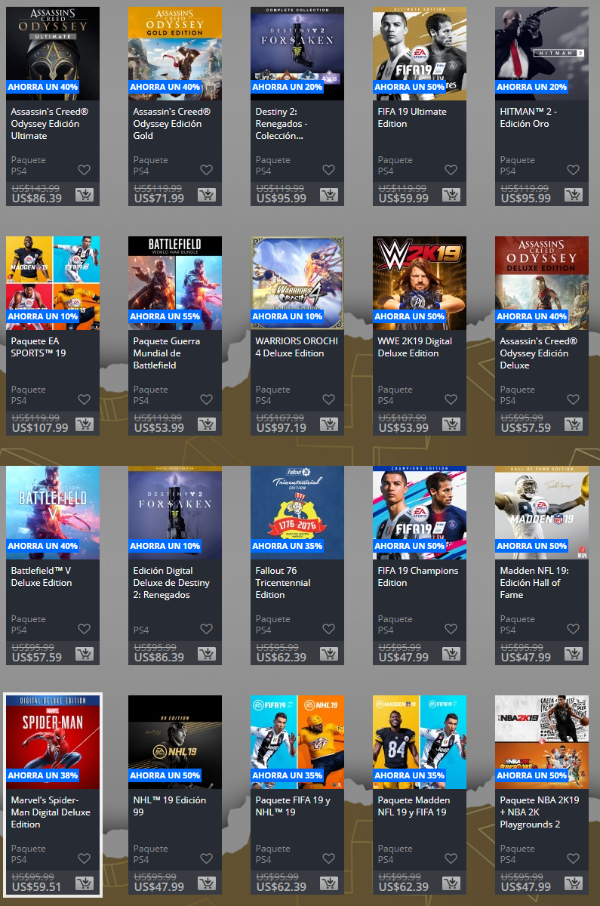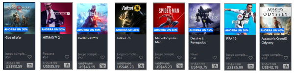 Títulos de los más importantes para la consola, como FIFA 19, God of War, Marvel’s Spiderman, BattlefieldV,Assassin’s Creed: Odysseyy Fallout: 76tendrán su precio reducido considerablemente y algunos otroshasta en un 70% de su valor original.