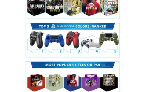 Además hay una lista con los colores de los Dualshock más vendidos, con el negro como el principal seguido por los mandos azul, rojo, black y camo.