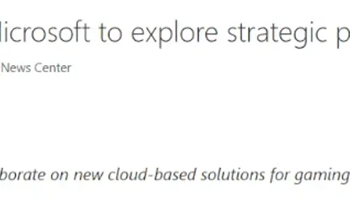 “Las dos compañías explorarán el desarrollo en conjunto de soluciones futuras en la nube en Microsoft Azure para apoyar sus respectivos juegos y servicios de contenido de streaming”,explica el comunicado oficial.“Trabajando juntas, ambas compañías apuntan a entregar experiencias de entretenimiento mejoradas a sus consumidores de todo el mundo y también crear mejores plataformas de desarrollo para la comunidad creadora de contenidos.”