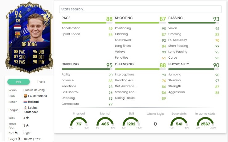 FRENKIE DE JONG – (BARCELONA/HOLANDA) > 94