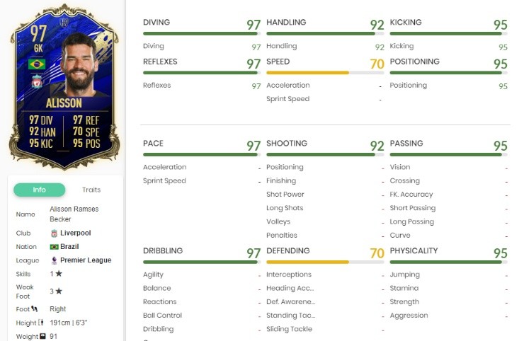 PO: ALISSON – (LIVERPOOL/BRASIL) > 95