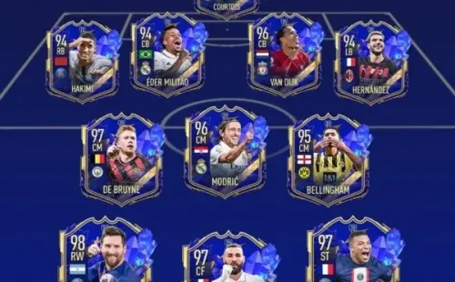 La promoción de los TOTY comenzará este viernes 20 de enero en el Ultimate Team del FIFA 23. Los primeros en salir serán Courtois, Hakimi, Militao, Van Dijk y Hernández, quienes se podrán conseguir en sobres. Una semana más tarde serán reempalzados por De Bruyne, Modric y Bellingham, mientras que la semana siguiente éstos dejarán su lugar a Messi, Benzema y Mbappé.