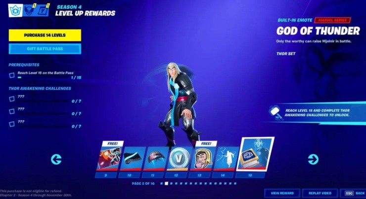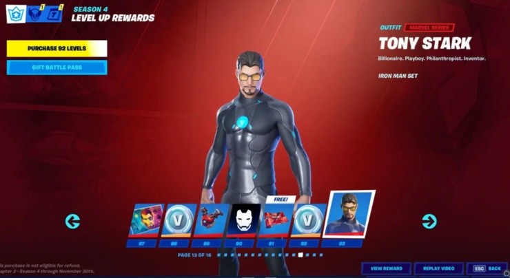 La Temporada 4 de Fortnite Capítulo 2 finalmente llegó con la actualización de este jueves y claro, eso significa un nuevo Pase de Batalla para el juego. En esta ocasión, la temática de MARVEL dominará el Pase, entregándonos aspectos como los de Thor, Gamma, Tormenta, Groot o Iron-Man, entre otros.
