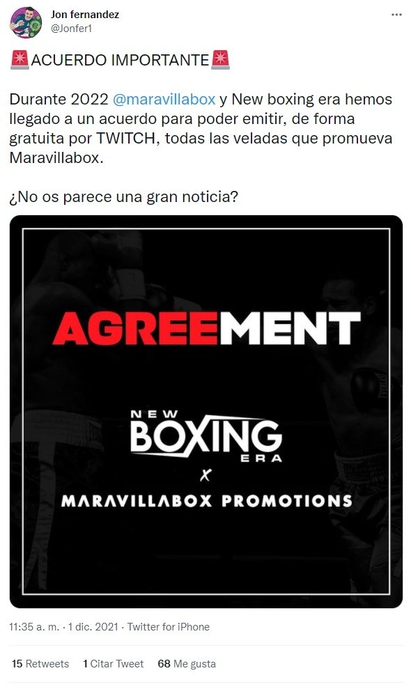 Y el primer gran anuncio de eventos en vivo para el 2022 en Twitch es ni más ni menos que nuevas veladas de boxeo, pero no por parte de Ibai, sino que Jon Fernández, un boxeador y reconocido streamer, confirmó que Maravilla Box y New Boxing han llegado a un acuerdo con Twitch para el próximo año.
