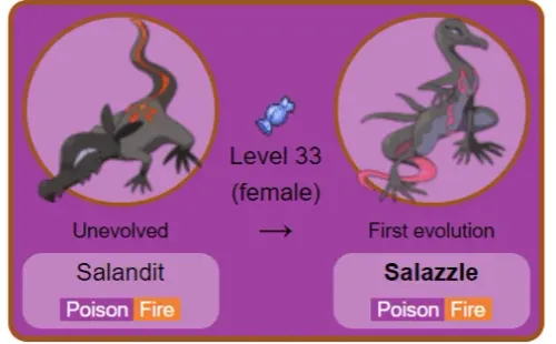 Como se ve en el video, el Salandit del tercer slot evoluciona en Salazzle, aunque al ser macho no debería poder hacerlo. Según han reportado en Reddit, esto funciona con todos los Pokémon que evolucionan por experiencia (no sirve con Pokémon que evolucionan por Piedras Evolutivas), por lo que también se puede obtener, por ejemplo, un Vespiqueen macho con este método.