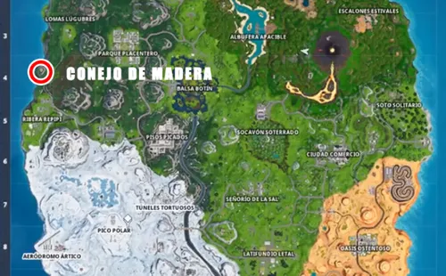 Encontrarás el conejo de madera en el límite oeste de la isla, directamente al norte de Ribera Repipi. El conejo está ubicado en una pequeña elevación y necesitarás construir para alcanzarla si no caes directamente allí.