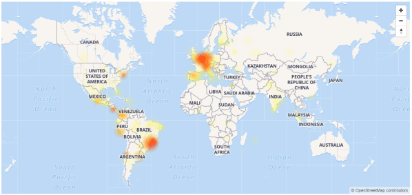 La web DownDetectormarca como las zonas donde más quejas se han reportado a las regiones de América del Sur, más precisamente en Argentina, Brasil y Colombia. Por otra parte, en la región central de Europa y la costa oeste de Estados Unidos también hay quejas por el servicio de WhatsApp.