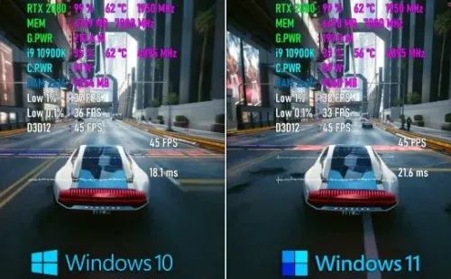 El canal de YouTube analiza el contenido de juegos modernos y populares, como Assassin’s Creed Valhalla, Microsoft Flight Simulatory Red Dead Redemption 2, para averiguar cómo difiere el rendimiento. Lo cierto es que en líneas generales, los cambios son nulos o apenas se notan, por lo menos en esta versión de Windows 11, que aún no es la final.
