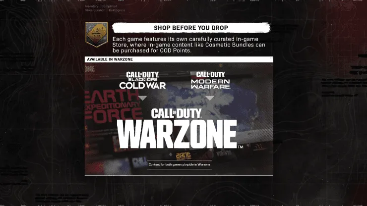 Black Ops Cold WaryWarzonecompartirán contenido de temporada posterior al lanzamiento a través del sistema del Pase de batalla (incluidos niveles gratuitos de contenido) y la Tienda, los jugadores podrán acceder a ellay usar sus puntos COD para comprar una amplia variedad de paquetes de cosméticos.