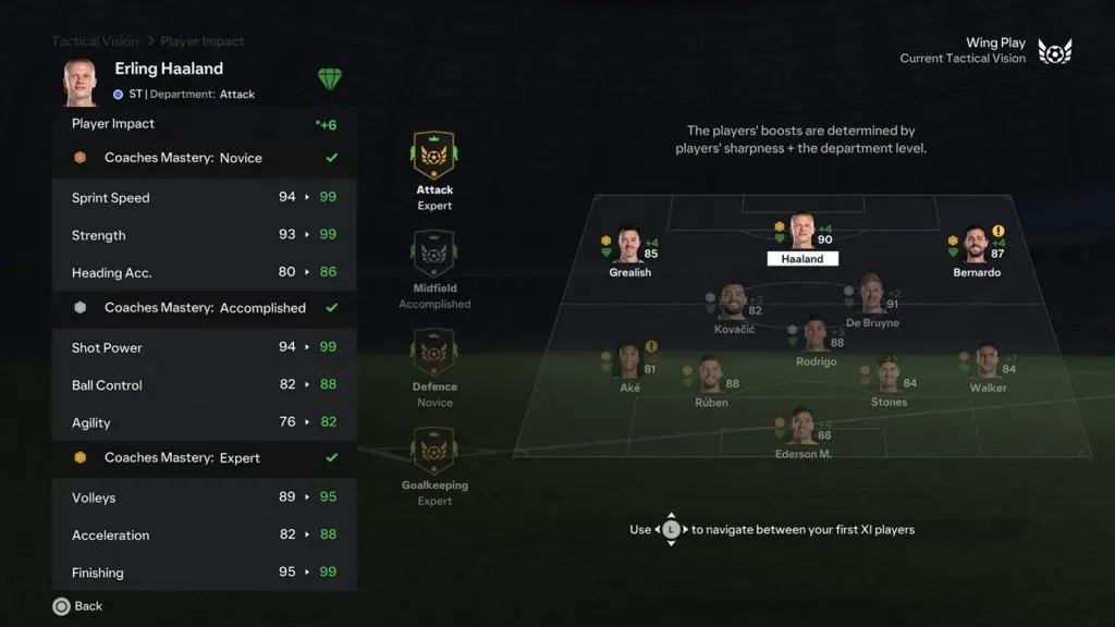 El impacto también va en la forma en la que los futbolistas se adaptan a tus tácticas, y les otorgarán bonificaciones en diferentes apartados del juego (ataque, defensa, mediocampo y portería).