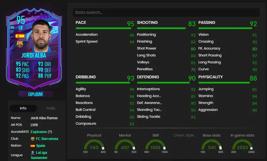 - Jordi Alba EOAE: Requiere plantillas de 85 y 87.