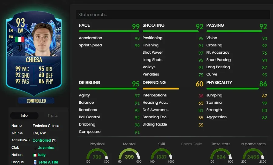 - Federico Chiesa TOTS: Requiere plantillas de 84, 87, 88 y 89.