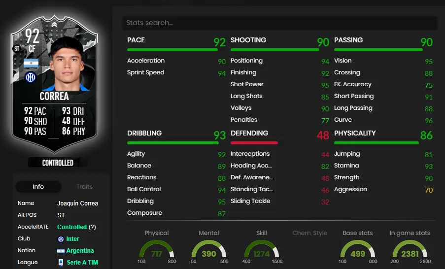 - Joaquín Correa Showdown: Requiere plantillas de 88 y 89.