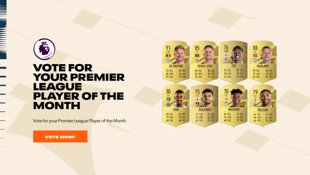 Cada mes, EA Sports celebra al mejor jugador de cada liga grande europea con una carta especial de POTM (Player of the Month) en el Ultimate Team de FIFA 23. En el caso de la Premier League, ya están los jugadores nominados y desde ahora mismo se puede votar a nuestro elegido.