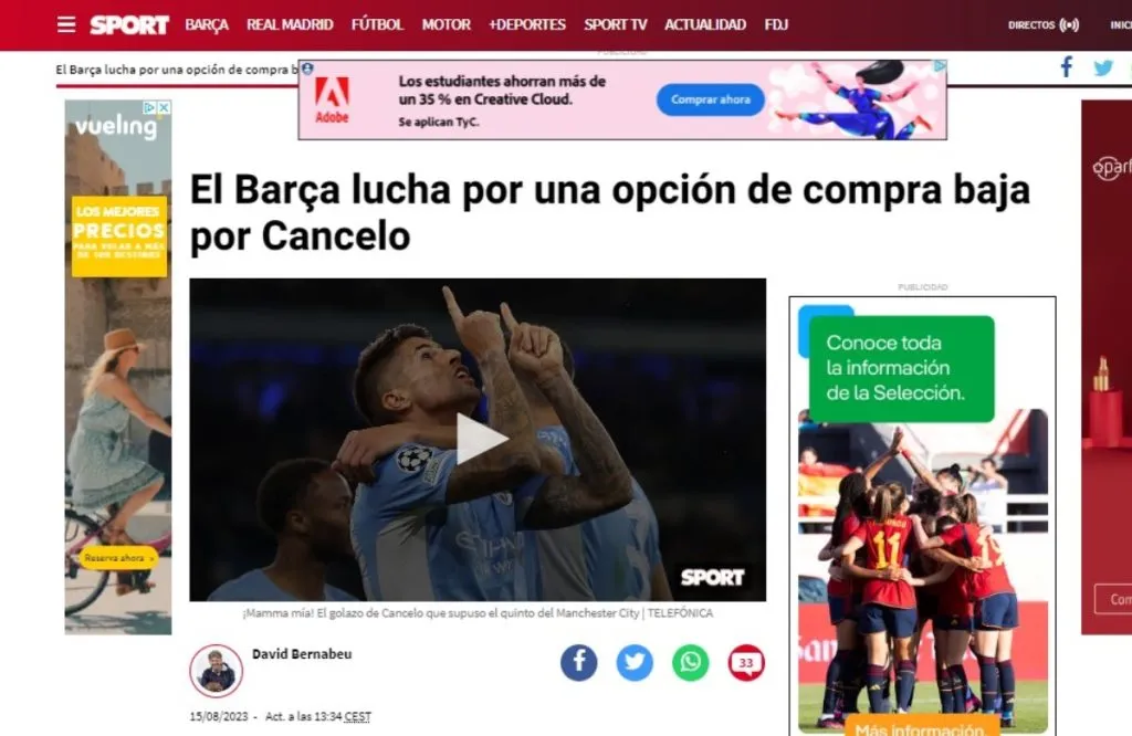Xavi quiere un lateral, así de simple. Evitar que pilares en defensa como Ronald Araújo o Jules Koundé tengan que rendir lejos de su posición natural abarca todas las preferencias de un cuerpo técnico donde el nombre de Iván Fresneda (Valladolid) también aparece en el abanico de posibilidad. Sport asegura que Joao Cancelo es el gran sueño, así como que todavía existen diferencias economías con Manchester City para cerrar todo.