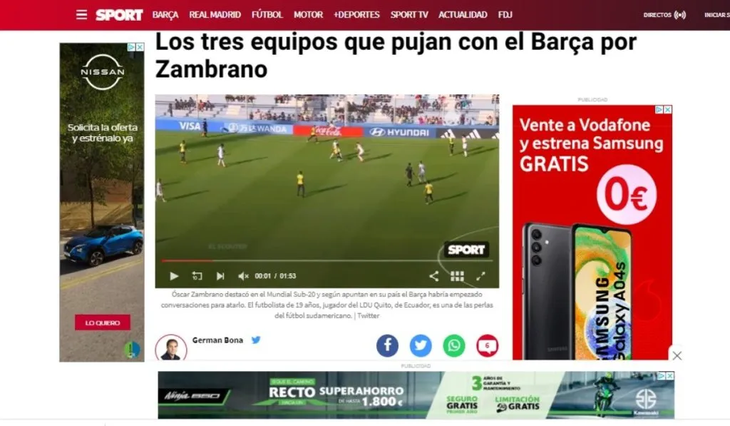 El volante ecuatoriano sigue sonando en el Camp Nou. Sport afirma que Barcelona monitoriza de manera clara sus prestaciones, así como que se compite con la MLS y con clubes como Crystal Palace o West Ham por sus servicios. Óscar Zambrano esperará, pero el tiempo apremia y sin un importante ingreso de millones, no hay cash para incorporarle.