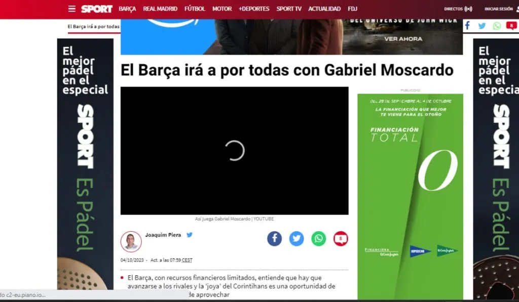 “Y al Barça le ha surtido una oportunidad de mercado, que intentará explotar para llevar a buen puerto: Gabriel Moscardo, el pivote defensivo del Corinthians de tan solo 18 años, a quien Deco, cuando aún no ejercía oficialmente como director deportivo intentó atar entre mayo y junio”, líneas del diario Sport para explicar los deseos del nuevo director deportivo de cara a las incorporaciones.